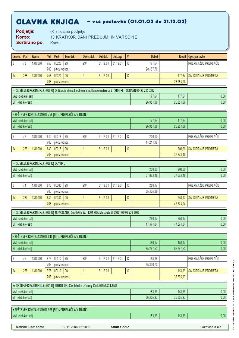 Moderno oblikovani izpisi narejeni z generatorjem poročil omogočajo hitro določitev različnih oblik in barv.