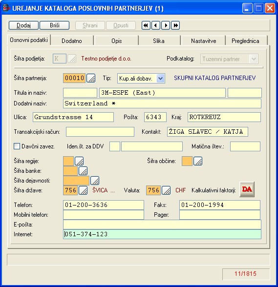 ![]() Modul za urejanje kataloga poslovnih partnerjev |